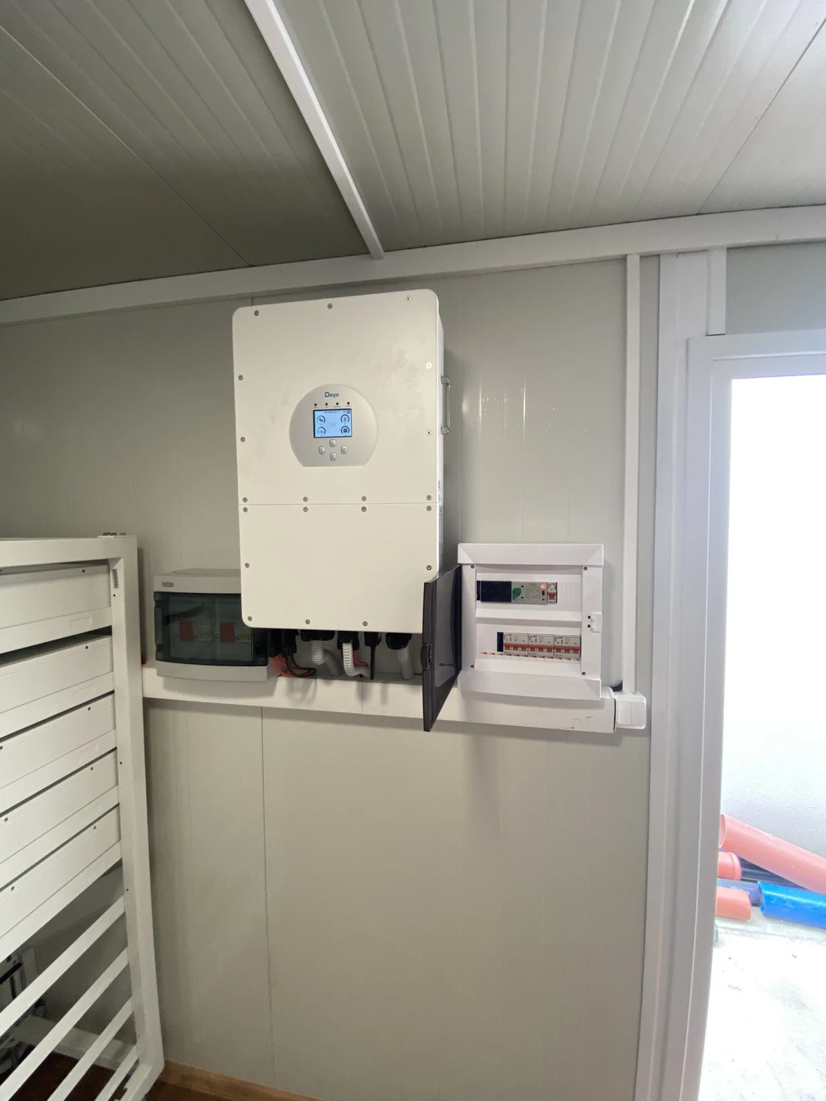 Системата е оборудвана с високоволтова батерия Deye, която осигурява стабилно съхранение на енергия и възможност за надграждане при бъдещо увеличаване на потреблението. Това позволява на клиента да използва произведената енергия в пикови часове, да намали сметките за ток и да разполага с резервно захранване при нужда.р